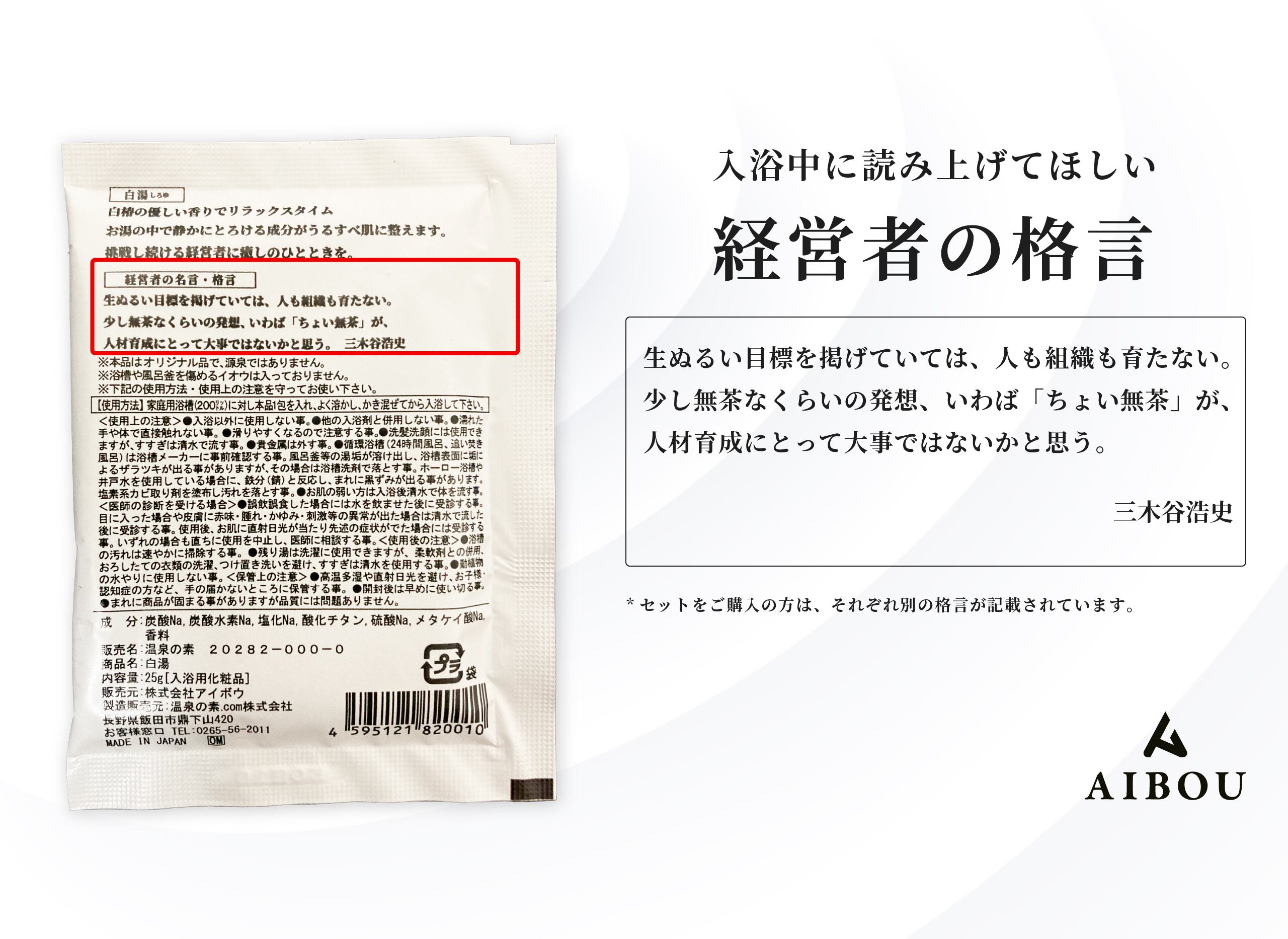 【使用方法】家庭用浴槽(200㍑)に対し本品1包を入れ、よく溶かし、かき混ぜてから入浴して下さい。